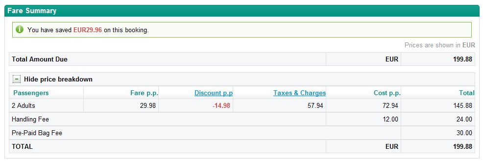 Aquí podeis ver la tarifa final aplicada, que es la que indicaba en Trabber: